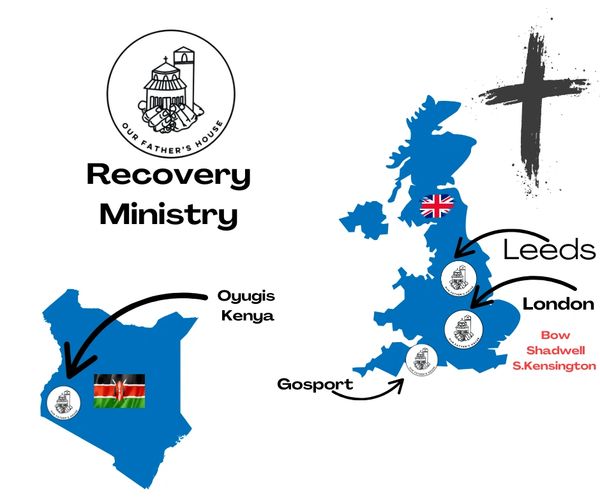 At Our Father’s House, we are committed to reaching individuals across the UK and in Kenya, Africa, who are seeking recovery from any type of addiction and spiritual transformation. Our branches serve as places of support, fellowship, and faith, where people can work through the 12-step programme while embracing their relationship with Jesus.